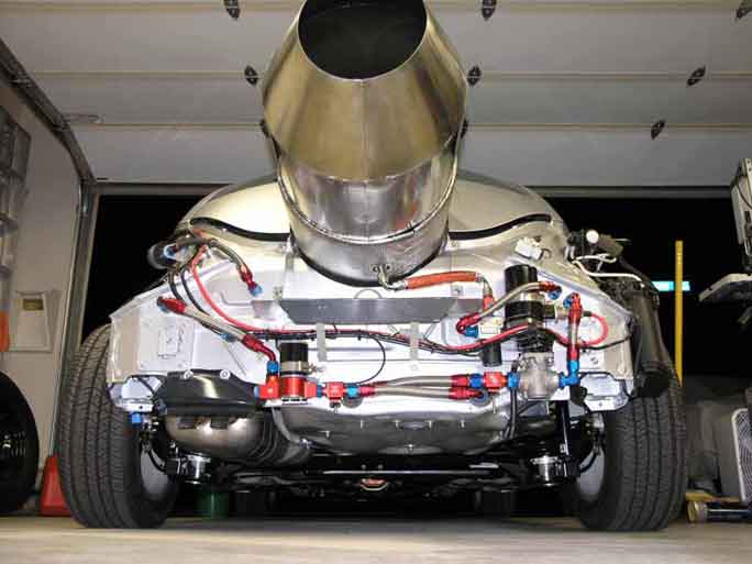 kevlar fuel cell in the spare tire well. Two fuel exits in the back: