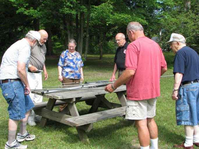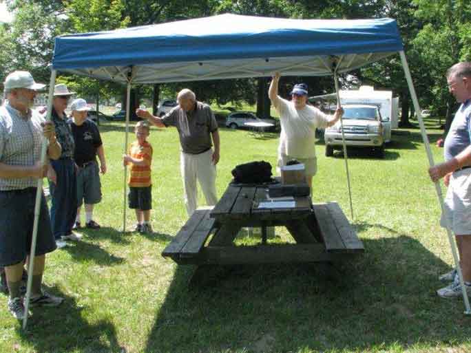 Attached are some pictures taken by shutterbug KC8PCQ. We Started out with a good breakfast at the Hungry Tummy then went to the Benzonia Park to set up for Field Day, had a great working crew, at 2 PM communications started at 6 Pm a good family cookout with the main course and all the trimmings provided by KC8PCQ & W8TVC.