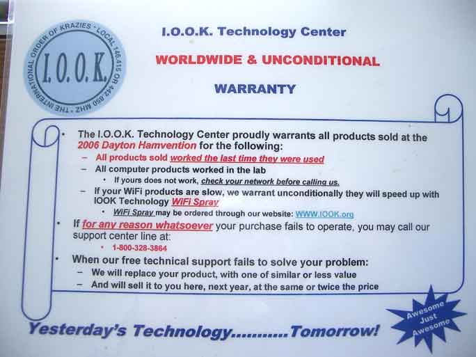 In the afternoon, the rains stops and things warm up some when the sun comes out. As we begin to think about tear down we once again review the I.O.O.K. Warranty as prepared by our Technology Department.