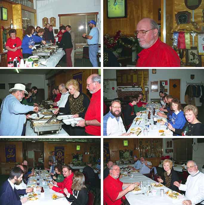 I believe this was the second Christmas Party that the IOOK held at the West Carrollton Lyons Club. This party occurred on December 2, 1995. The first series of shots show the fantastic buffet that Max, KA8ZBV set up for the gang!