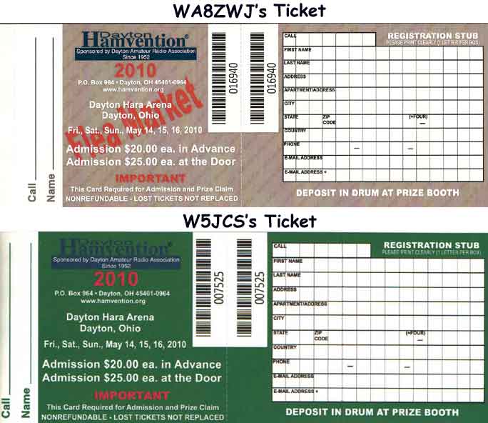 Jim, W5JCS is a HamVention "junky" and he was so happy to get his advanced ticket in the mail that he scanned a copy and sent it to Keith, WA8ZWJ. Keith, also being a HamVention "junky" also scanned his ticket so you can see the difference between a "Flea Market" ticket and a regular ticket.