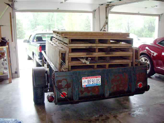 trailer. Lou stores the floors in a small outbuilding at his place.