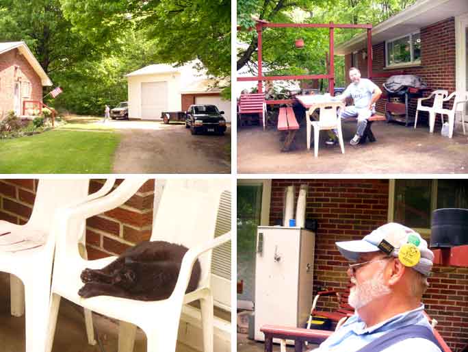 Tuesday prior to HamVention, Fast Eddie arrived at the Farley Flophouse to set up the suds for flow. As you look at the panel below you will see Fast making a final adjustment on the tap. Next he is checking for clarity. In the third shot he is sampling the bouquet prior to actually tasting the beverage! In the final photo in the group you see Lou, N8KXM and Sandi as they stopped by to pick up the trailer that would be used to transport the floors to and from HamVention.