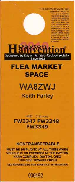 Our Flea market spaces (N 39 49.373 W 084 15.451) are the same as the last few years: 3347, 3348, and 3349 (Now with a proceeding FW for Flea Market West) and as far as I know, Tom, W5KUB, and the rest of the Tennessee/Arkansas gang will be at FE3407, 3408 and 3409! Tom plans to have live streaming video during their travels Wednesday and during the flea market through HamVention! If you cant make the hamfest, at least you can say hi to the gang and maybe you can win one of the prizes Tom has made arrangements for! http://w5kub.com