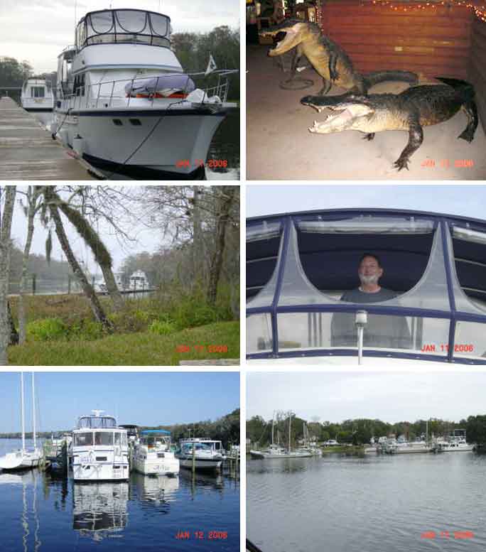 Here are some shots of the trip south in Jan. and downtown JAX. That is Ron, N0TJS at the helm. The boat was tied up at Six Mile Creek for the night, the gators were caught on the dock where the boat is! There is a shot of the marina where the boat is now from the water on approach, and a picture of the owners house. Then of course the cat fish from this mornings schedule. 73's, Dave