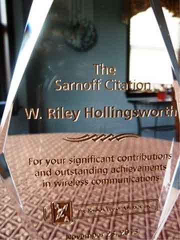 Retired FCC Special Counsel for the Spectrum Enforcement Division Riley Hollingsworth, K4ZDH, of Gettysburg, Pennsylvania, is the 2013 recipient of the Sarnoff Citation. The Radio Club of America established the award in 1973 to recognize an individual or club member for "significant contributions to the advancement of electronic communications." The Sarnoff Citation has been made to RCA members "who have contributed to advancement of electronic communications in any significant manner, including nontechnical support of the wireless industry," the club's website states.