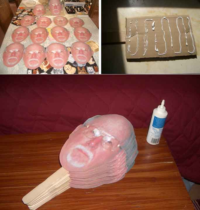 First print the kbobface.jpg file. (see below) It is best if you can print it on a hard card stock rather than plain paper or glossy paper. The reason to avoid plain paper is because it is so flimsy. The reason to avoid glossy paper is because of the reflective surface that is not conducive to snap shots (it will reflect the flash of the camera).