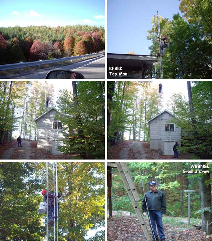 Last Saturday afternoon was a delightful fall day here in Northwest Lower Michigan. John, KF8KK took advantage of both the beautiful weather and some free labor to finish installing a tower up at the house. The idea here is when the new ham shack in the house is completed, on those cold northern Michigan mornings he won't have to run to the pole barn and work to get a fire going in the stove, but, he will be able to join the IOOK nets from the warmth and comfort of the house!