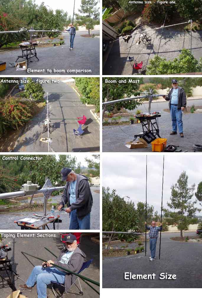 After that we simply rotated the boom so that we were able to attach the fiberglass elements into the boom while we sat on the roof. Once all the fiberglass elements were on the boom we activated the controller to extend the phosphor bronze elements inside the fiberglass tubes, called Hoss (WA5ZAI in Valley Mills, Texas), and had a 5x9 + 20 contact (SWR of 1.0) running 50 watts from Poway, CA.!!!