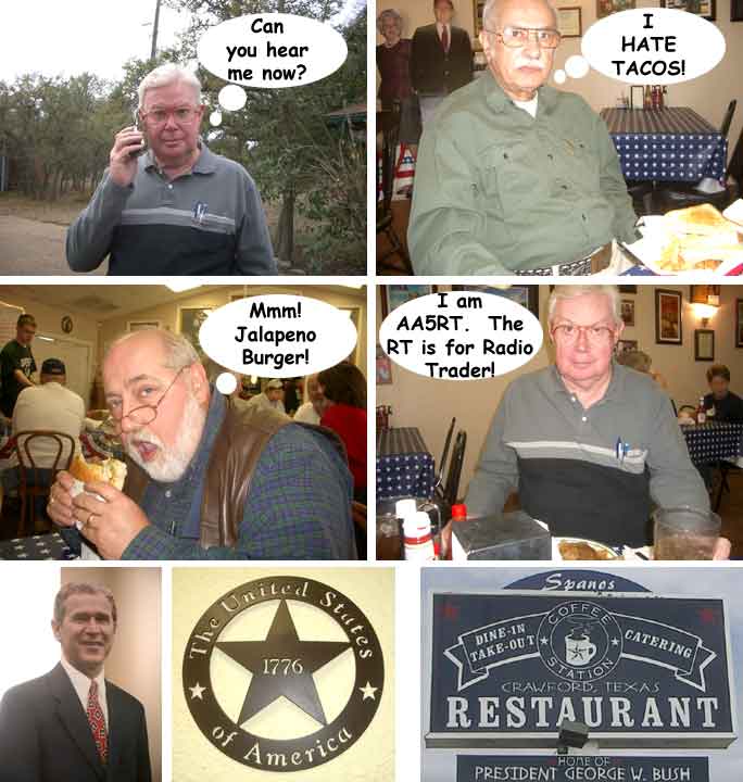Day Sixteen – Thursday, 2/23/06 – Alrighty then! After my walk this morning, Margareth served Hoss and I biscuits and gravy! We then did a few computer related chores and the next thing we knew, Ron, AA5RT was here. The three of us went to Crawford to the famous Coffee Station where “W” stops in when he is in town and had lunch (Jalapeno Burger – Mmm Mmm) (see photo yuma06-29.jpg).